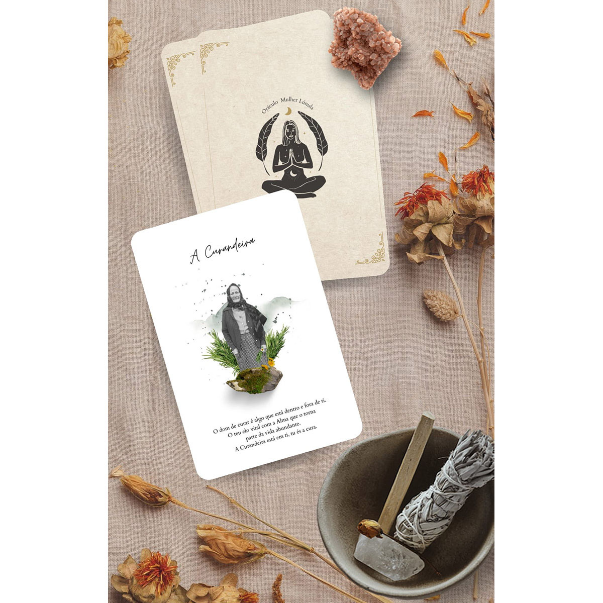 O Oráculo Mulher Lúnula começou a ser desenhado em Maio de 2020 e ganhou forma no Inverno de 2020/2021 quando me mudei para a montanha em Guimarães. O grande chamado para trabalhar a minha Ancestralidade materializou-se nesta ferramenta que, espero eu, possa ajudar muitas mulheres a trilhar a sua jornada.