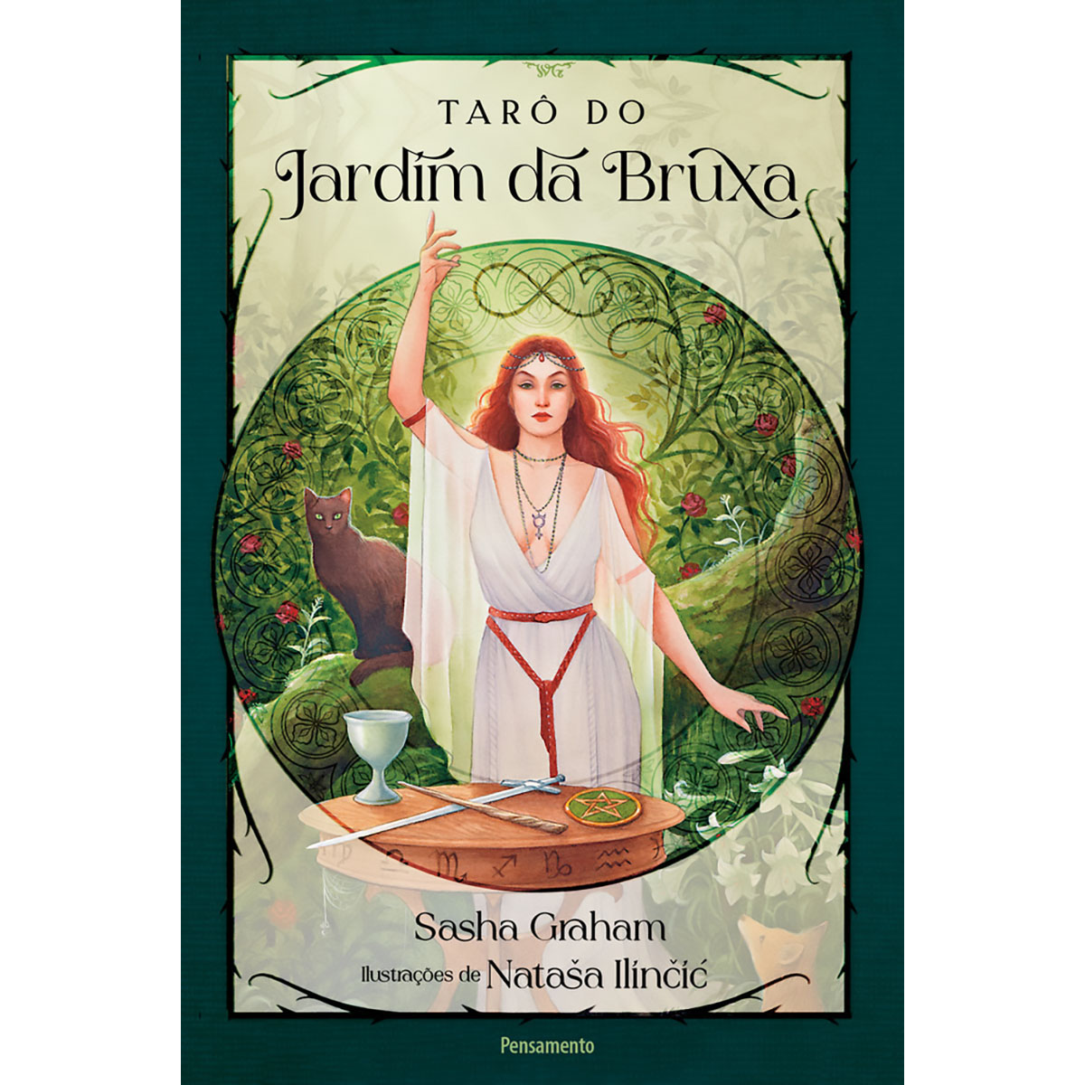 Baseado no sistema Waite-Smith, este tarô autoral apresenta seres mágicos, criaturas mitológicas, lagos fantásticos e plantas encantadoras que povoam o jardim da bruxa.