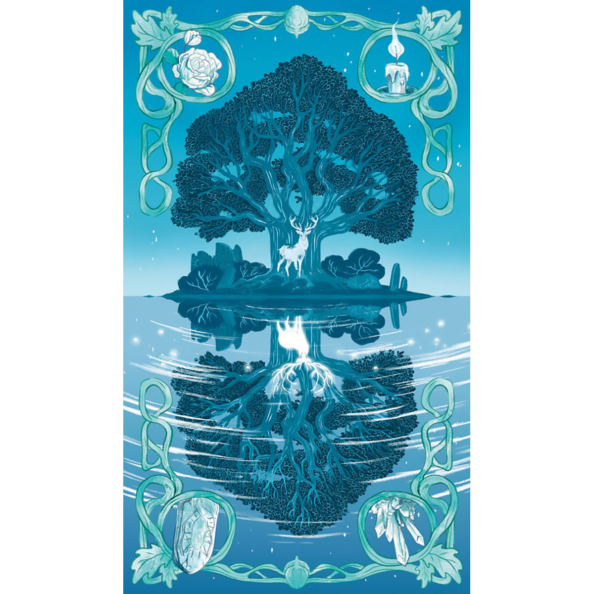 there, but she perceives the magic that permeates this enchanted realm. Real and unreal mix in the fascinating adventure recounted by the cards of this narrative Tarot deck. Along the journey, we too have a chance to discover a new side of ourselves, and develop a different way to look at things.